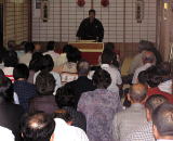 春日町鹿場の常樂寺(板倉宥海住職)では、九月二十五日の夜に落語会が開催され、百名近くの聴衆が本堂いっぱいに詰めかけた。
