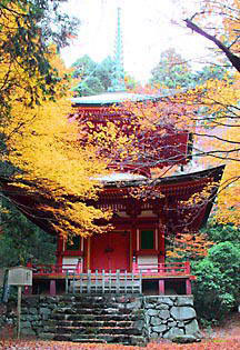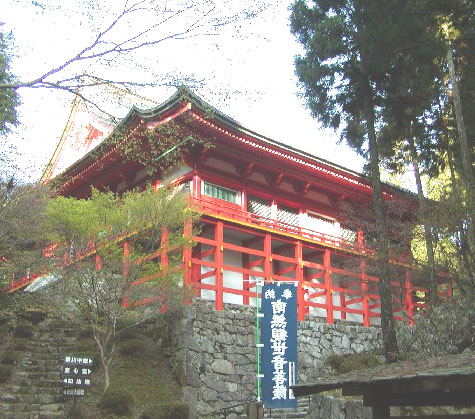 ご本尊は聖観音像と毘沙門天像の二尊が祀られていました。これは円仁が入唐求法の際、海上で嵐に遭遇したが、観音力を念じたところ毘沙門天が現れて救われたことに由来します。その後、慈恵大師良源が横川中堂を改修した際、新たに等身大の不動明王像が加えられました。現在の建物は昭和四十六年に再建された舞台造りと鮮やかな朱塗りの印象的なお堂で、新西国霊場十八番の札所です。