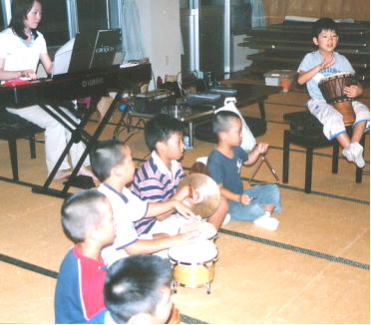 また、夜は音楽療法士の義積美由紀さんによる「ふれあいコンサート」を行い、様々な楽器を使って即興の音楽を奏でるなど、楽しい一時となりました。